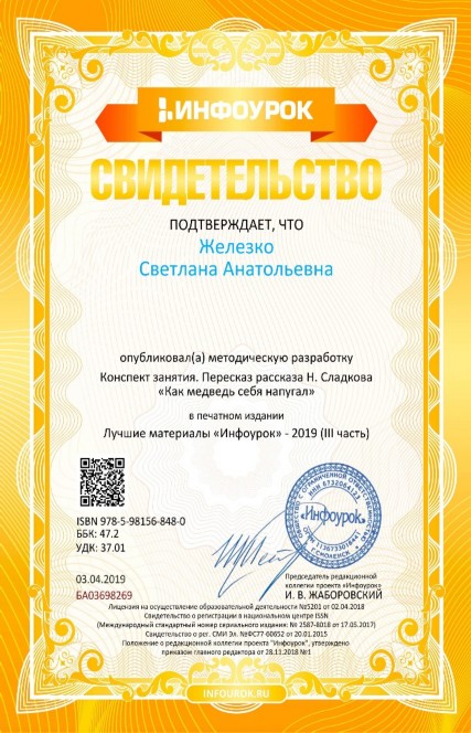 Свидетельства о публикации в печатном издании «Лучшие материалы