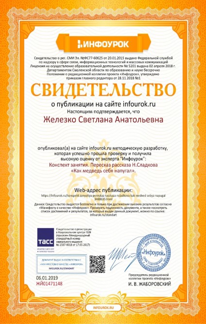Свидетельство о публикации на сайте