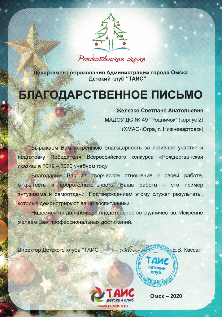 2020 г. Рожественская сказка